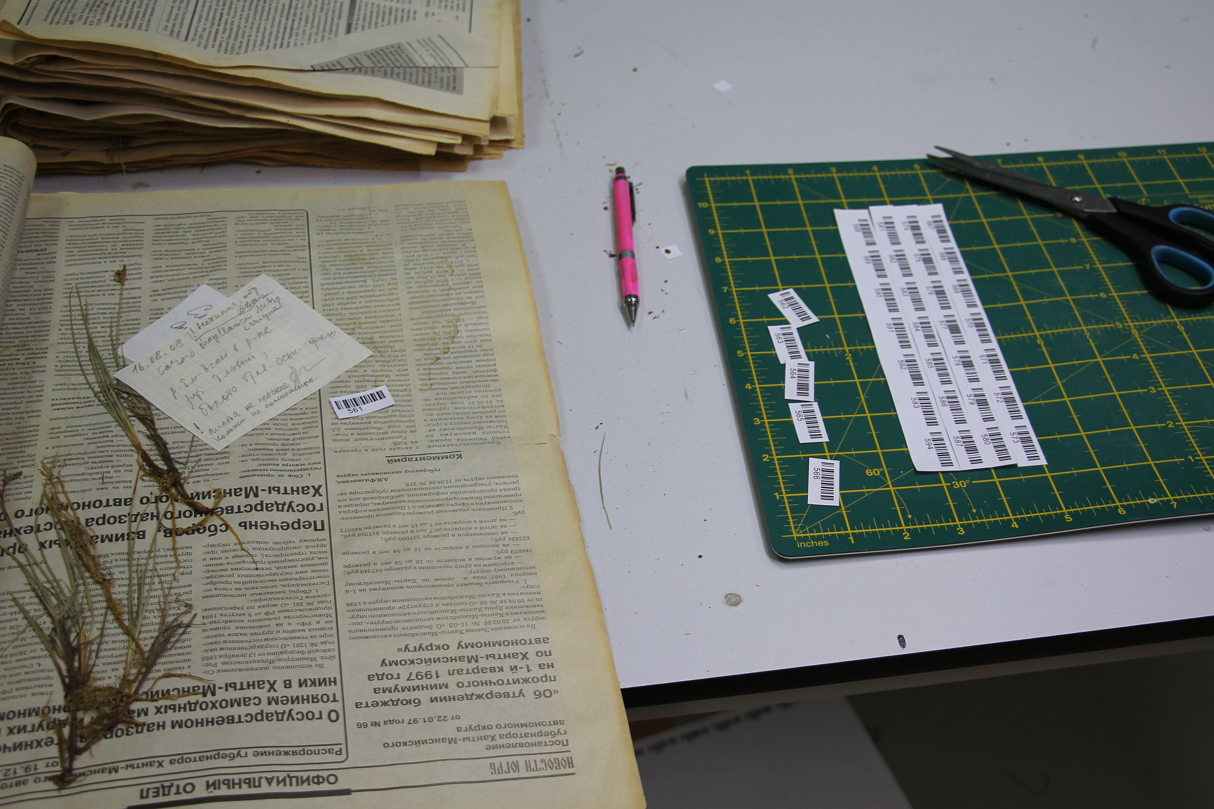Подготовка гербария к фотографированию (штрихкоды)